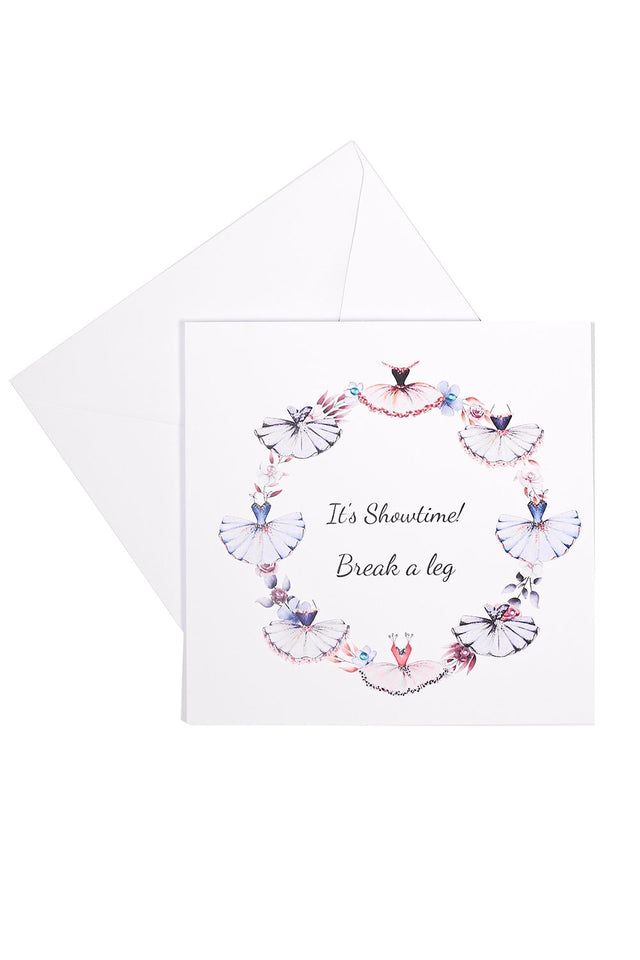 Senden Sie Ihre herzlichsten Glückwünsche mit dieser hübschen Grußkarte mit Tütü " It's Showtime" Illustration. Diese hochqualitative Grußkarte im Ballett-Thema ist perfekt dazu geeignet der Tänzerin oder dem Tänzer in Ihrem Leben Viel Glück oder Geburtstagsgrüße zu senden! Die Innenseite der Karte ist unbeschrieben , damit Sie diese mit Ihren eigenen Wünschen und Worten und vielleicht ein paar Kristallen verzieren können!