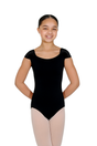 The Capezio Velvet Elizabeth Leotard combines timeless elegance with modern comfort. Featuring a soft scoop front and back, pleated velvet shoulder details, and a fully lined design for ultimate support. Perfect for young dancers looking for a stylish and comfortable leotard for class or performances.