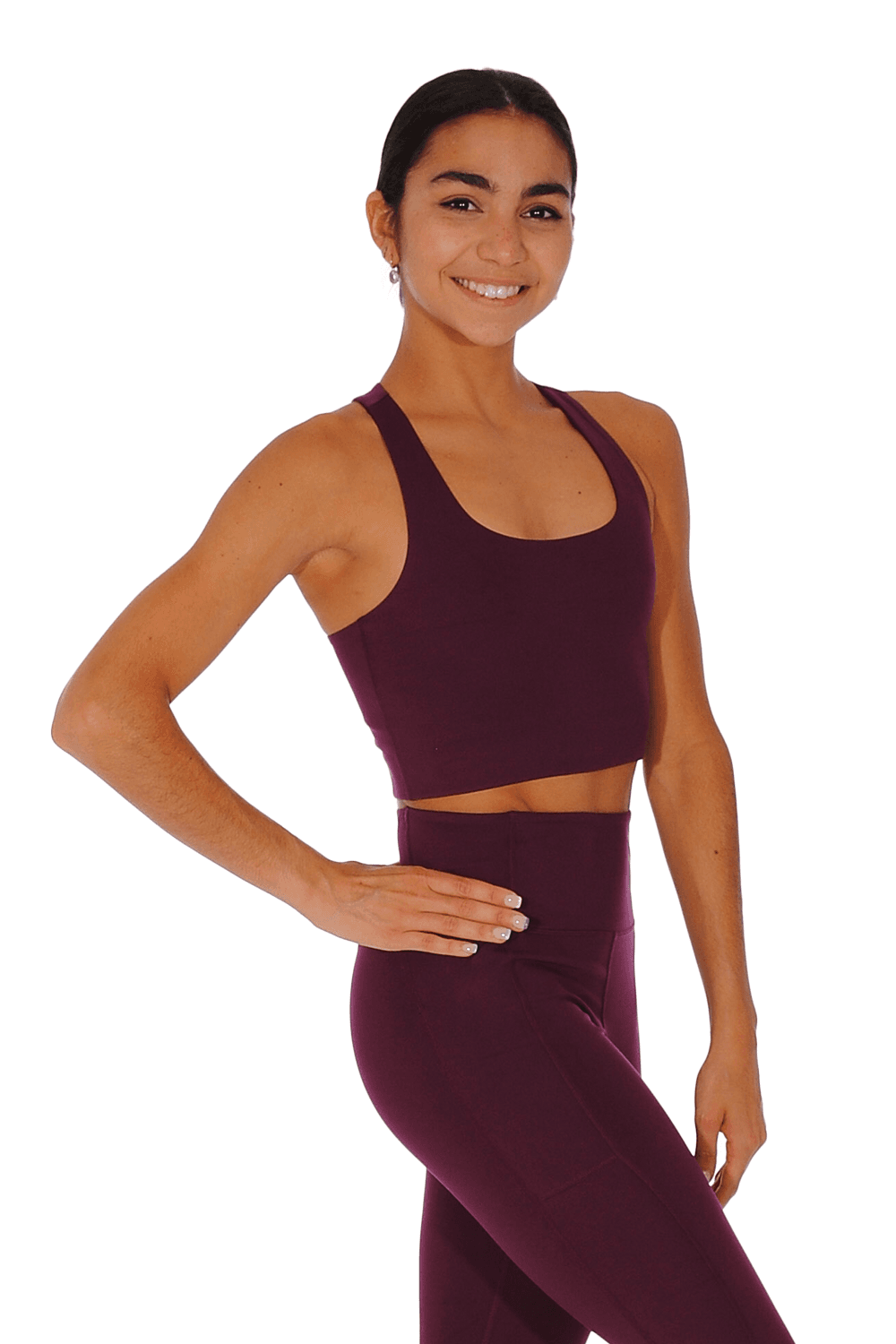A classic design crop top /sports bra with racer back. Fully lined, with a compressive fit offering medium support. Available in Black, Moss or Plum.