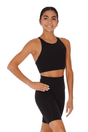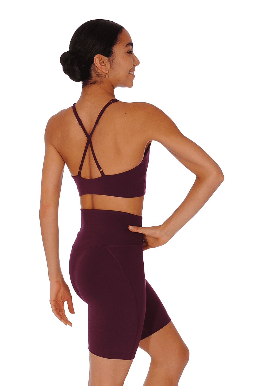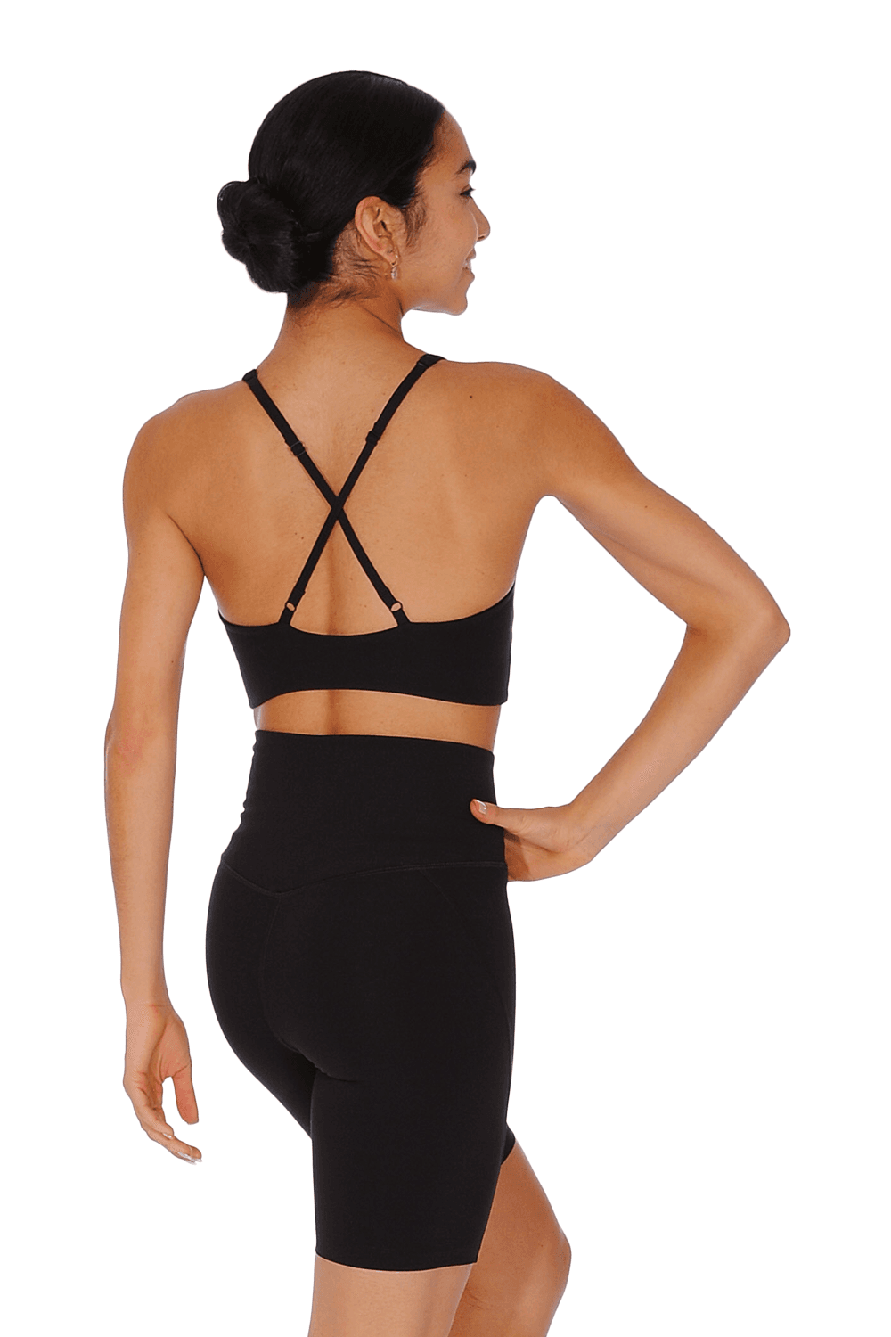 A comfortable crop top, sports bra with cross straps to the back that are fully adjustable. The compressive fabric adds security and is fully lined meaning this top can be worn for workouts, rehearsal or as a comfortable layer.