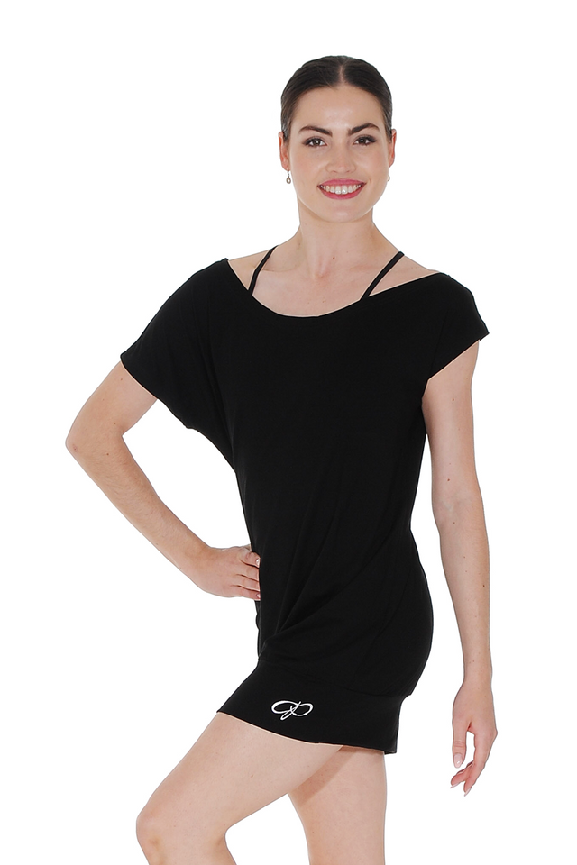 Papillon 10PA2239 off the shoulder longline dance top. Made from high quality Viscose, this top has a feature 'P' logo in silver on the deep hem at the bottom of the top for added detail. A versatile piece that can be worn as a loose, long-line top, or a tunic style short dress, the 10PA2239 is ideal for use as warm-up wear.