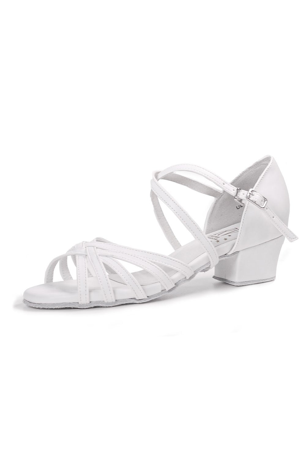 The Bella children's ballroom sandals from Roch Valley. Available in a shining range of colours, the Bella social shoe flaunts cross-over straps and a 1.2" heel, with synthetic leather or satin uppers and smooth suede soles. The quick-fasten buckle ensures a secure and easy fit for these cute and practical ballroom sandals.