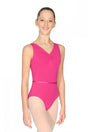 The Cotton Sheree leotard from Roch Valley. This traditional sleeveless leotard features an elegant scooped neck, ruched bustline, and matching belt. Suitable for exam grades 3, 4, and 5, the bbodance Musical Theatre uniform in black, and NATD uniform above grade 5 in black.