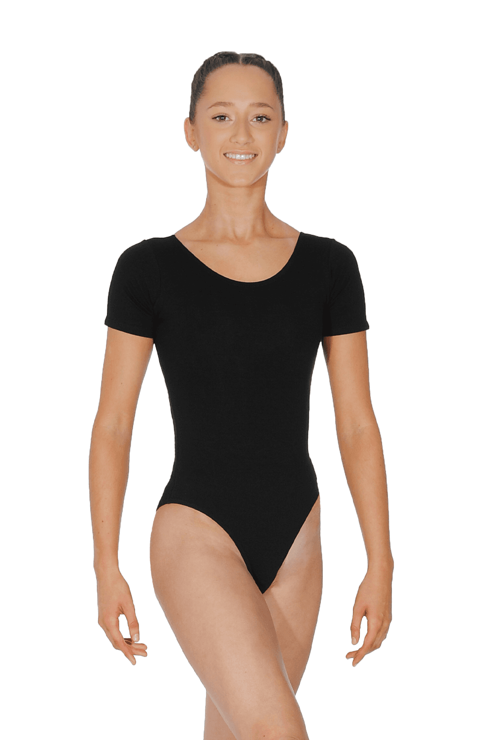 The CSSL leotard from Roch Valley. This short sleeve leotard has a classic round neck and features a back cut just above the bra line, and is made from comfortable and flexible Cotton/Lycra.