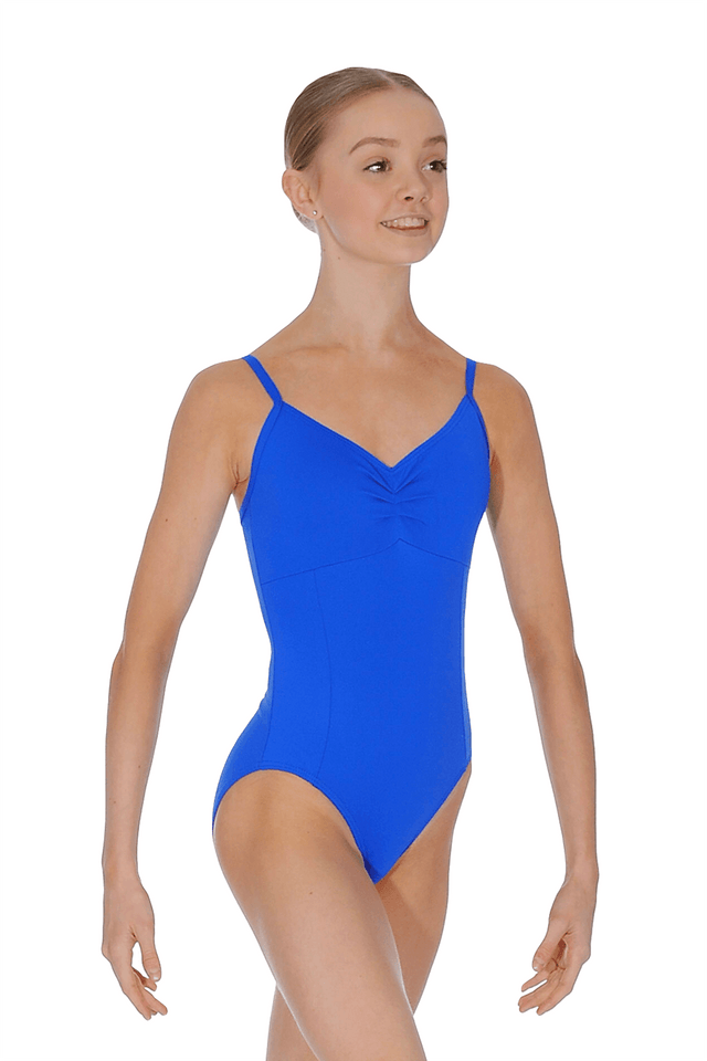 The Roch Valley Margot microfibre leotard, with non removable bra cups in sizes 3A (age 11-13) and upwards. Features a tucked pleat for a flattering fit and thin camisole straps. Front lined for modesty.