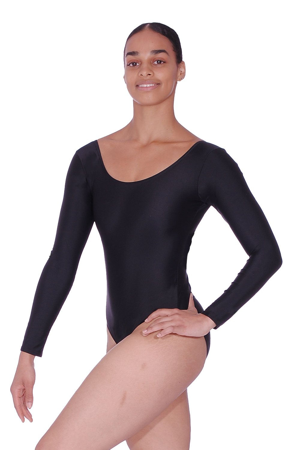 The Roch Valley Willow leotard, manufactured with Italian Econyl® sustainable fabric is a classical long sleeved style leotard with scoop neck line. This timeless leotard style is available from a child's age 3-4 to a women's large, and in a choice of five colours - Black, Pink, Purple, Kingfisher and Raspberry.