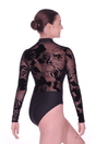 The sophisticated Felicite black leotard from Wear Moi has sheer long sleeves and back panel, embellished with beautiful flocked flowers. This ladies leotard in black really stands out from the crowd. A front zip down to the waist creates a modern look - Simply stunning!