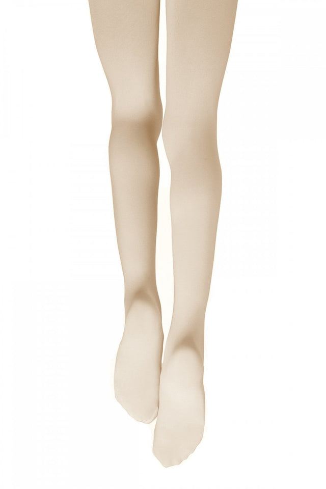 Capezio V1882 Essential Tights. Semi-opaque footed tights featuring a soft, elastic-free waistband for a smooth and pure look. Fantastic for practice at the ballet barre, the V1882 is available in a delicate Pink and is made from supportive 88% Nylon/ 12% Lycra.