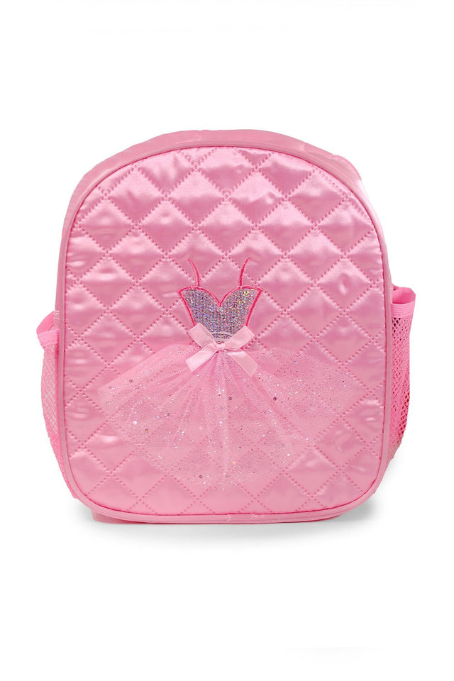 The B282 bag from Capezio is a practical backpack design with adjustable straps to make sure of the perfect fit. There are mesh pockets on the outsides and a large inner pocket. The sparkly tulle 3-D tutu embellishment and metal ballerina zipper tag add an extra special touch.