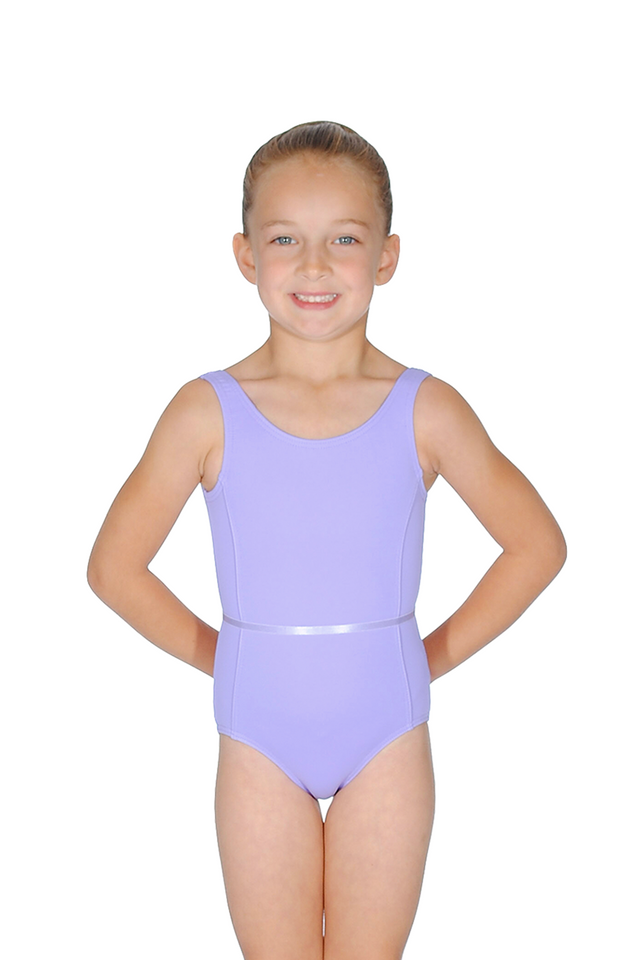 The Roch Valley RVBeatrice microfibre leotard with princess seams. This sleeveless girls' leotard is front lined and includes a slim 8mm elasticated waist belt. Available in 10 beautiful colours and is ideal as class wear.